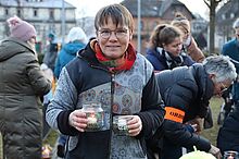 Knapp 100 Menschen haben sich auf dem Zinzendorfplatz in Königsfeld versammelt, um gemeinsam ein Zeichen für Menschlichkeit und Demokratie zu setzen. Sie waren dem Aufruf der Zinzendorfschulen und der evangelischen Gesamtgemeinde gefolgt und hatten bunte Lichter unter Botschaften rund um den Teich gestellt. „Unsere Demokratie und unsere demokratische Grundordnung sind gefährdet“, warnte Hans-Beat Motel, Pfarrer im Ruhestand, und wies darauf hin, dass Demokratie nicht vom Himmel falle, man müsse etwas dafür tun. „Tun wir etwas dafür, indem wir am 23. Februar ein Kreuz für Vielfalt und Toleranz setzen.“ Zuvor hatte sich die Schulpfarrerin der Zinzendorfschulen, Elisabeth Kodweiß, mit den Worten „Wir stehen hier und machen ein Licht an, wir lassen uns von der Dunkelheit nicht überwältigen“ an die Demonstrierenden gewandt. „In einer Zeit, in der Hetze, Vorurteile, Pauschalisierungen und Spaltung die Schlagzeilen beherrschen, entsteht schnell der Eindruck, als verschwände das Gute im Schatten. Aber wir sagen heute: wir machen ein Licht an! Wir erheben unsere Stimmen und machen mit unseren Kerzengläsern sichtbar: wir wollen eine Gesellschaft, in der jeder Mensch – unabhängig von Herkunft, Religion oder sozialem Status – in seiner Würde geachtet wird.“ |