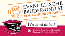 Vom 30. April bis 4. Mai 2025 findet der 39. Deutsche Evangelische Kirchentag in Hannover statt. Fünf Tage gesellschaftliche Diskussionen, Gottesdienst feiern, große und kleine Kulturangebote und vor allem Begegnung und Gemeinschaft. Der Kirchentag in Hannover steht dabei unter der Losung „mutig – stark – beherzt“ (nach 1. Kor 16,13-14): so wollen wir über die Herausforderungen unserer Zeit diskutieren, uns einander zuwenden und gegenseitig im Glauben bestärken. Die Herrnhuter Brüdergemeine ist dabei: Jugendliche aus Neugnadenfeld (Ökumenisches Jugendbüro Ringe) beim Abend der Begegnung | Innenstadt | Mi 18.00 bis 22.00 Uhr Mitmachangebote im Zentrum Kinder und Familien | Maschstraße 16 | Do – Sa 10.30 bis 18.00 Uhr Kindergebet für das Leben | Maschstraße 22 – 24 | Do – Sa 12.30 bis 13.00 Uhr Markt der Möglichkeiten mit HMH und EBU | Messehalle 6, Stand 6-E07 | Do – Sa 10.30 bis 18.30 Uhr Abendmahl | Klopstockstraße 16 (Gethsemanekirche) | Fr 19.00 bis 20.30 Uhr Abendtreff unterm Stern | Klopstockstraße 16 (Gethsemanekirche) | Sa 19.00 bis 20.30 Uhr (nicht im regulären Kirchentagsprogramm verzeichnet) Wir freuen uns auf Ihren Besuch! Informationen rund um den DEKT 2025 finden Sie auf der Seite www.kirchentag.de |