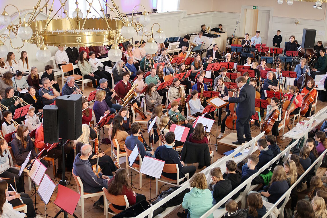 Eine Probenwoche, zwei Schulen, drei Konzerte, vier Tage voller gelebter Gemeinschaft, fünf Dirigent*innen und rund 140 Musikerinnen und Musiker – die gemeinsame Musikwoche der Evangelischen Zinzendorfschulen Herrnhut und der Zinzendorfschulen Königsfeld war ein voller Erfolg.