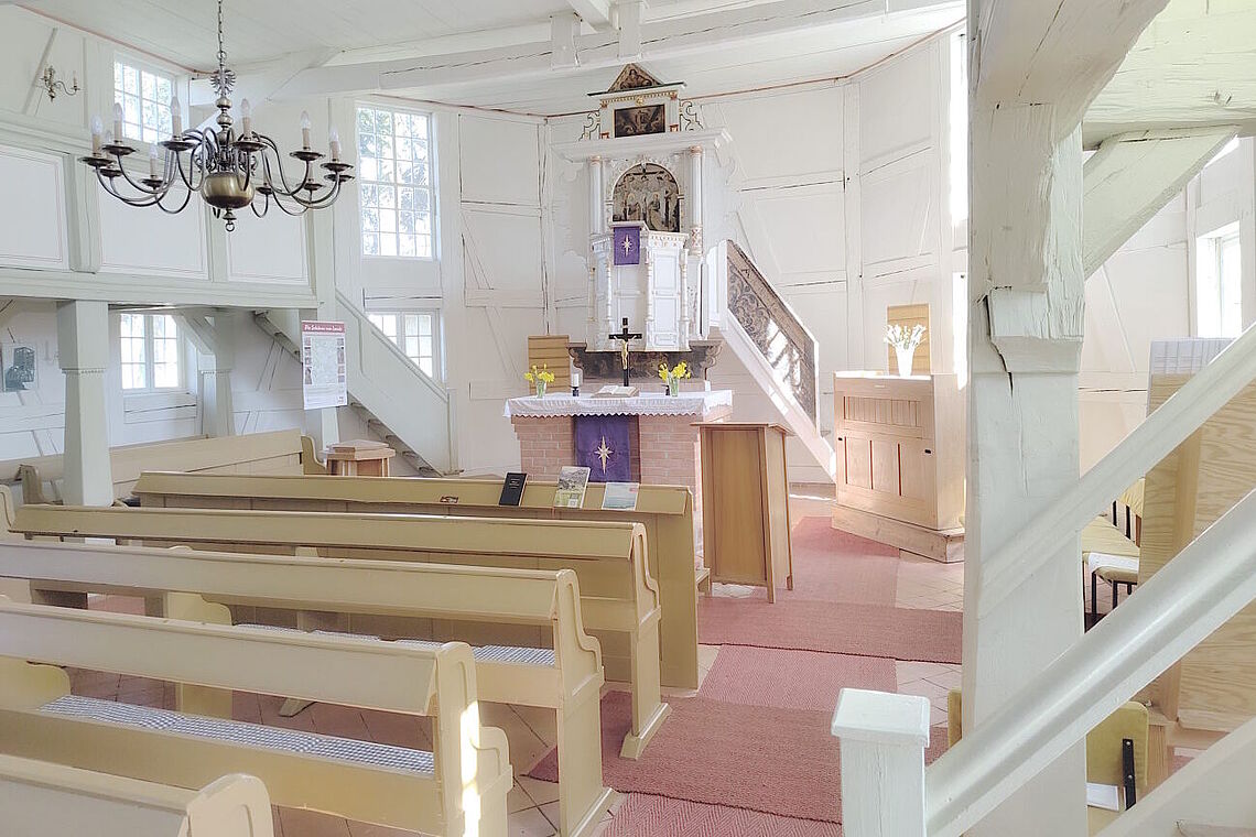 Die Sonne scheint warm in Duben. Eine pittoreske Stimmung durchzieht das südbrandenburgische Dorf am Rande des Spreewalds mit seinen Pferdekoppeln und DDR-Gartenzäunen. In seinem Zentrum erhebt sich eine Fachwerkkirche aus dem 17. Jahrhundert. Ihre schlichte Gestaltung und bäuerliche Eleganz soll gestressten Autoreisenden Ruhe schenken. Tatsächlich ebbt der Geräuschpegel von Bundesstraße und Autobahn ab, als sich die Tür schließt. Zu hören ist nur noch ein sanftes Schlagen gegen das Kirchenfenster, einen dicken Brummer zieht es an diesem warmen Frühlingstag Anfang April nach draußen. Der Versammlungsplan lädt in diesem Monat lediglich zu einer Passionsandacht ein; für weitere Gottesdienste müssen die Dubener andere Kirchen der Umgebung ansteuern.