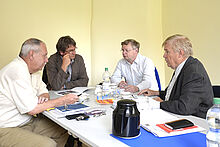 Am 3. Juni traf sich der Vorstand der Graf-Zinzendorf-Stiftung in Herrnhut mit den Referenten für Öffentlichkeitsarbeit der Brüder-Unität und der Herrnhuter Missionshilfe (HMH) zu einem Gedankenaustausch. Dabei ging es um Schritte, mit denen die Stiftung und ihr Anliegen noch wirksamer in die öffentliche Aufmerksamkeit gerückt werden können. Die Stiftung will bei Projekten der Brüdergemeine helfen, die diese als ihr originäres Erbe in die christliche Ökumene und in die Gesellschaft einbringt, darunter besonders die Bildungsarbeit, die diakonische Arbeit, die Jugendarbeit in den Gemeinden und überregional, die theologische Aus- und Weiterbildung sowie das Unitätsarchiv. Ausführlich stellt sich die Graf-Zinzendorf-Stiftung hier vor. |