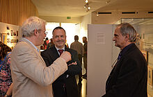 Anlässlich der Gründung des Archivs der Brüder-Unität (Unitätsarchiv) vor 250 Jahren fand vom 26. bis 29. Juni 2014 in Herrnhut eine international besetzte Tagung unter dem Titel »... so müssen wir denn ein Archiv der Wahrheit haben« statt. 25 Vortragende aus zehn Nationen gaben anhand von Quellen aus dem Unitätsarchiv Einblick in ihre neuesten Forschungen und Projekte. In einem Festgottesdienst wurden Chorwerke aufgeführt, zu denen die Manuskripte in der Musikaliensammlung des Archivs aufbewahrt werden. Im Rahmen der Tagung wurde am Freitag Nachmittag auch die Jubiläumsausstellung »Gedenke der vorigen Zeiten« im Völkerkundemuseum Herrnhut mit großem Publikum eröffnet. Sie ist bis zum 2. November 2014 zu sehen. Ein ebenfalls zum Jubiläum erschienenes, reich bebildertes Buch »Das Unitätsarchiv« präsentiert ausführlich die Geschichte von Archiv, Bibliothek und Beständen www.unitaetsarchiv.de. Auf dem Bild Dr. R. Kröger, Leiter des Unitätsarchivs im Gespräch mit Prof. H. Fischer, Generaldirektor der staatlichen Kunstsammlungen Dresden und S. Augustin, Leiter des Völkerkundemuseums Herrnhut (v.l.n.r.). |
