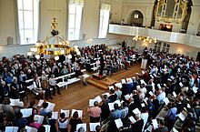 | | | Von Himmelfahrt bis zum Sonntag 8. Mai hat in Königsfeld das 18. Chortreffen der Brüdergemeine stattgefunden. 250 Sängerinnen und Sänger, je zur Hälfte aus den Niederlanden und aus Deutschland, gaben dem seit einem Jahr in den Chören vorbereiteten Repertoire nun den letzten gemeinsamen Schliff und hatten daneben viel Gelegenheit, sich kennen zu lernen oder alte Bekanntschaften aufzufrischen und miteinander zu feiern. Mehr ... |
