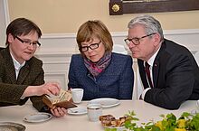 Im Vogtshof, dem Herrnhuter Verwaltungssitz der Freikirche, traf er mit der dort gerade tagenden Kirchenleitung zusammen und ließ sich über deren aktuelle Aufgaben und Herausforderungen informieren, wie auch über die Geschichte der Kirche, deren Wurzeln bis zur tschechischen Reformation des Jan Hus zurückreichen. Im Saal des Vogtshofes, wo tags zuvor die Losungen für den Jahrgang 2019 gezogen worden waren, wurde Joachim Gauck und Frau Schadt das einzige erhaltene Exemplar des ersten gedruckten Losungsbüchleins von 1731 durch die Leiterin des Unitätsarchivs, Claudia Mai, präsentiert. Zur Erinnerung bekam der Bundespräsident eine originale Losungsausgabe von 1940, seinem Geburtsjahrgang, überreicht. Mehr ... |