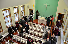 | | | Unter dem Motto »Zeit für Frieden« fanden sich am 11. November verschiedene Religionsgemeinschaften in Bern zur 10. Nacht der Religionen zusammen. Auch die Herrnhuter Sozietät hat sich im Haus der Religionen, zusammen mit der evangelisch-reformierten Friedenskirchgemeinde sowie mit der Gemeinschaft der Aleviten daran beteiligt. Obwohl letztere im Haus der Religionen die unmittelbare Nachbarin der Herrnhuter ist, gab es bisher kaum Berührungspunkte. Begonnen wurde mit einigen Friedensliedern aus der alevitischen Tradition in der Dergha, dem alevitischen Versammlungsraum. Dann zogen die Teilnehmer unter dem Gesang des Kanons »Dona nobis pacem« in den gegenüber liegenden Kirchenraum, wo miteinander Friedenslieder aus der christlichen Tradition gesungen wurden. Den Abschluss bildeten in dem dazwischen liegenden Raum des Dialogbereiches einige spirituelle Tänze unter Begleitung durch ein extra zu diesem Anlass zusammengestelltes kleines alevitisch-christliches Orchester. Die Herrnhuter Sozietät in Bern ist eine von vier Sozietäten in der Schweiz. |