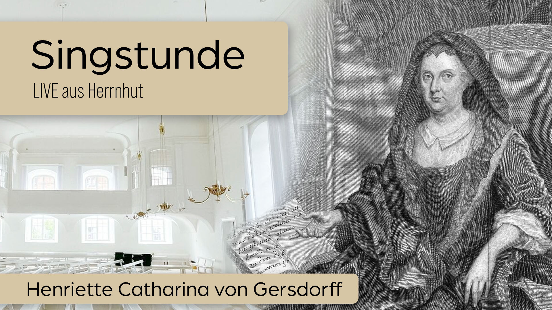 Anlässlich des 300. Todestages von Henriette Catharina von Gersdorff, wird eine besondere Singstunde mit ihren Liedern aus Herrnhut übertragen.